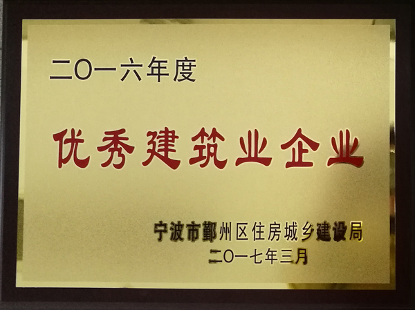 “2016年度寧波市鄞州區優秀建筑業企業”榮譽