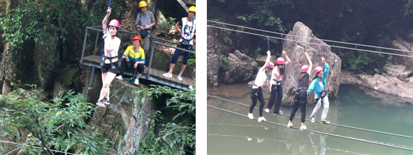 經過上午的熱身,下午開始了第九洞天穿越。看著那一道道關卡,大多數同事的心里是忐忑控慌的,但誰都不愿意做膽小的那個人,在大家相互協助下,一個個都完成了最后的闖關。