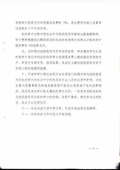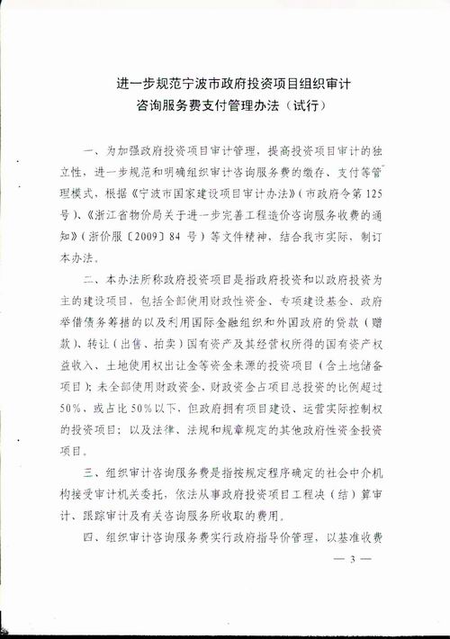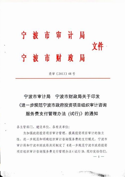 寧波市審計局、寧波市財政局文件 甬審[2013]48號 寧波市審計局 寧波市財政局關(guān)于印發(fā) 《進一步規(guī)范寧波市政府投資項目組織審計咨詢服務(wù)費支付管理辦法(試行)》的通知