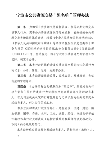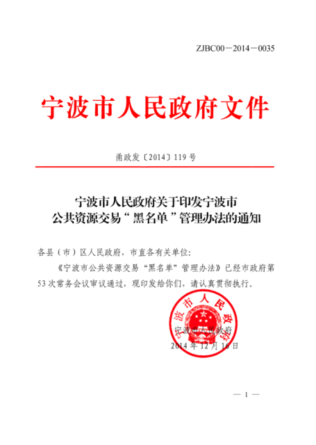寧波市人民政府關于印發寧波市公共資源交易“黑名單”管理辦公的通知